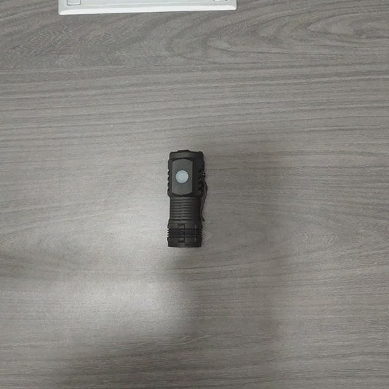 Compact and rechargeable mini LED flashlight with clip. Lightweight ABS body, 400mAh lithium battery, perfect for outdoor use or emergencies.