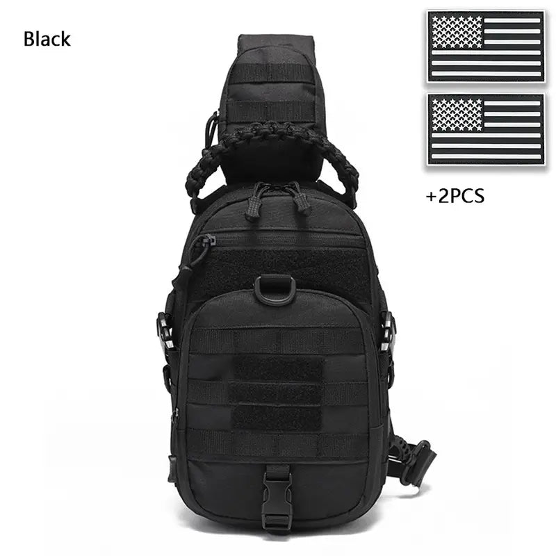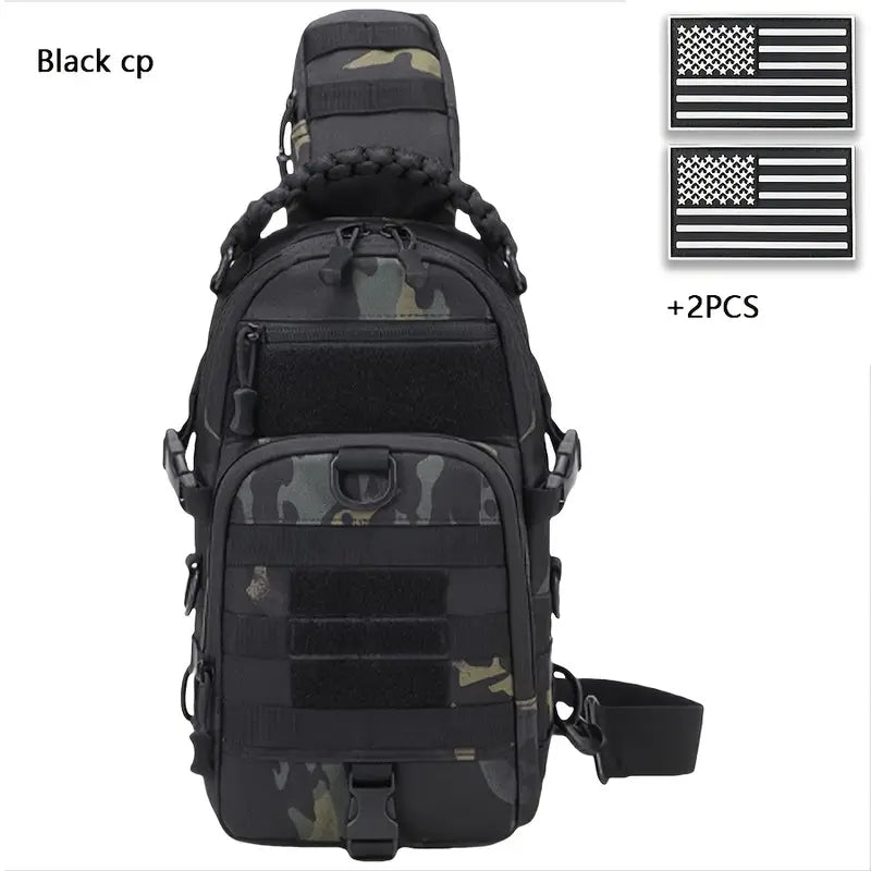 Multi-Functional Outdoor Sports Chest Bag – Durable Tear-Resistant Polyester with Multiple Pockets & 2 American Flag Patches